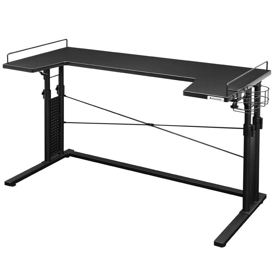 部屋のカドに設置できる、コンパクトな昇降式ゲーミングデスク