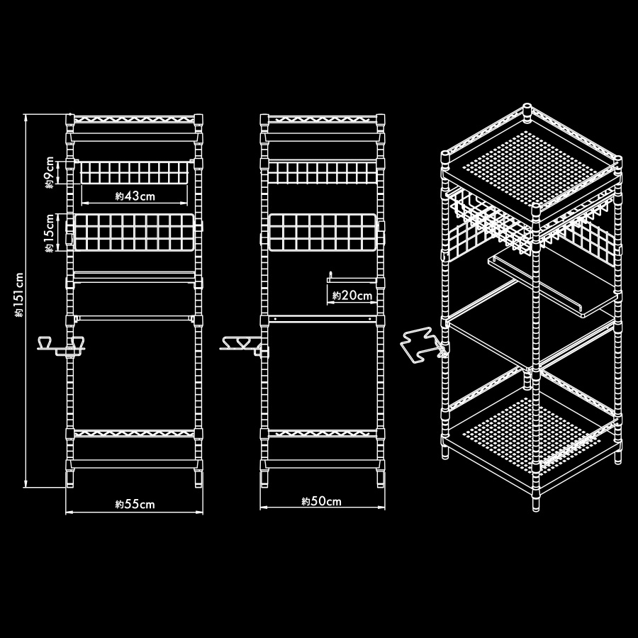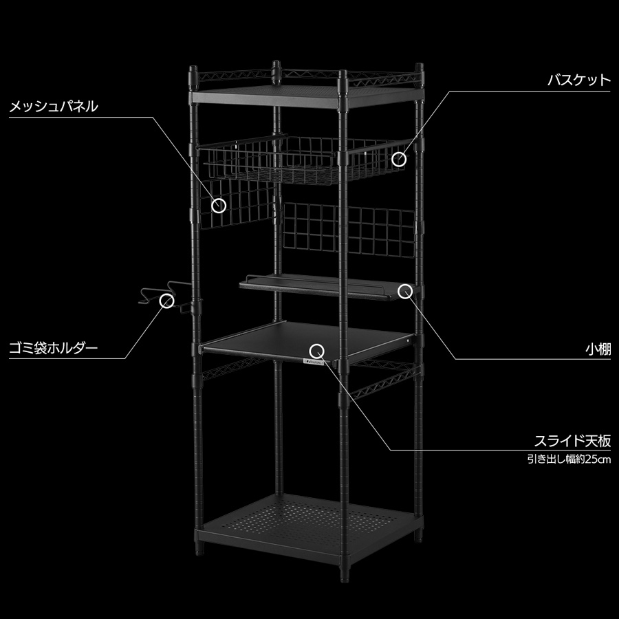 "作る・食べる・片付ける”を完結する、簡易テーブル付きラックです。デスクのすぐ横に電子レンジやミニ冷蔵庫をスマートに設置できます。