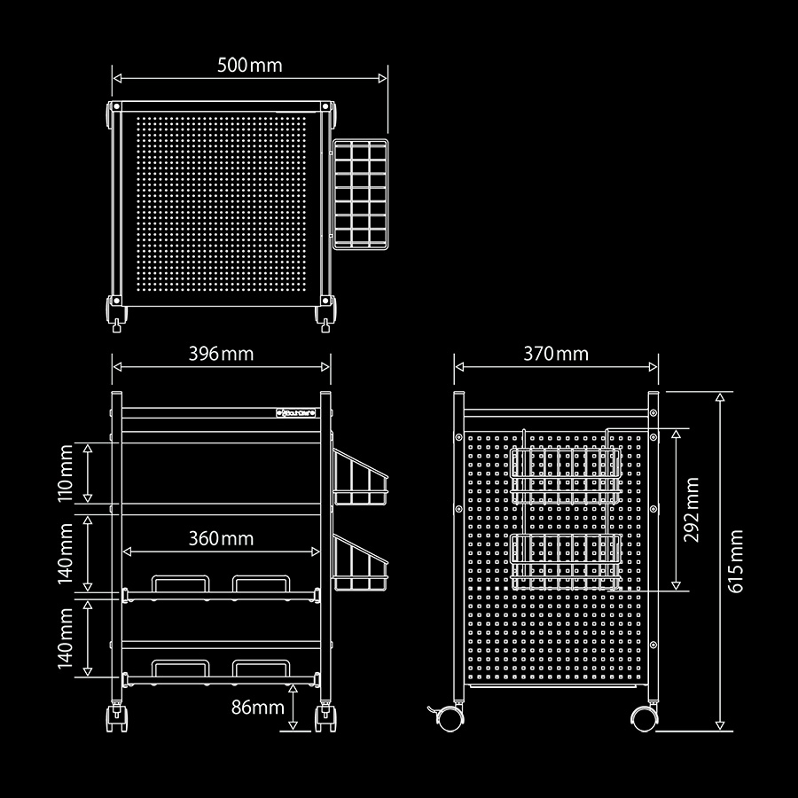 据え置き型ゲーム機を最大4台収納できる専用ラックです。スライド棚にはパンチングボードを採用し、排熱性に優れています。