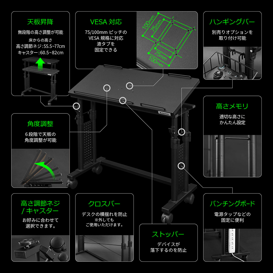 液晶タブレット/キーボード専用のデバイススタンドです。角度&高さが調節でき、快適な作業環境を構築できます。