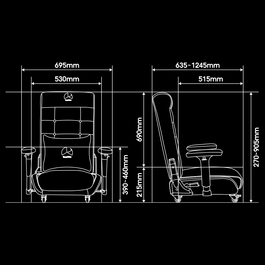 幅 約695mm奥行き 約635mm(635~1245mm) 高さ 約 905mm(270~905mm)