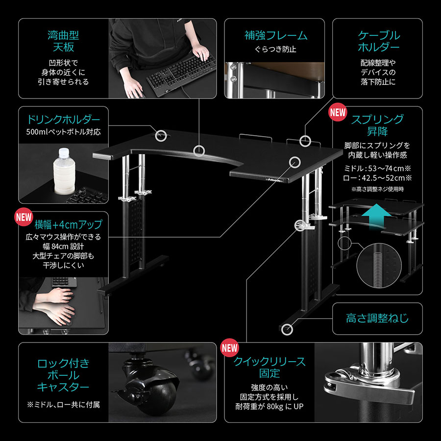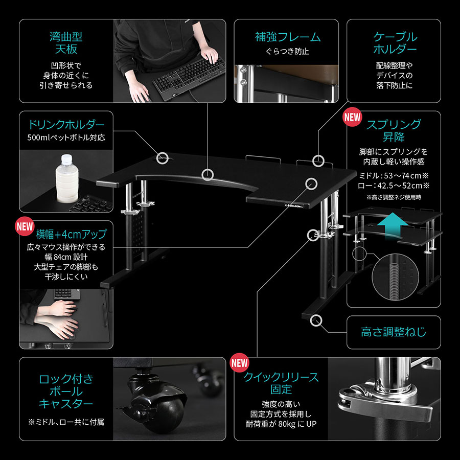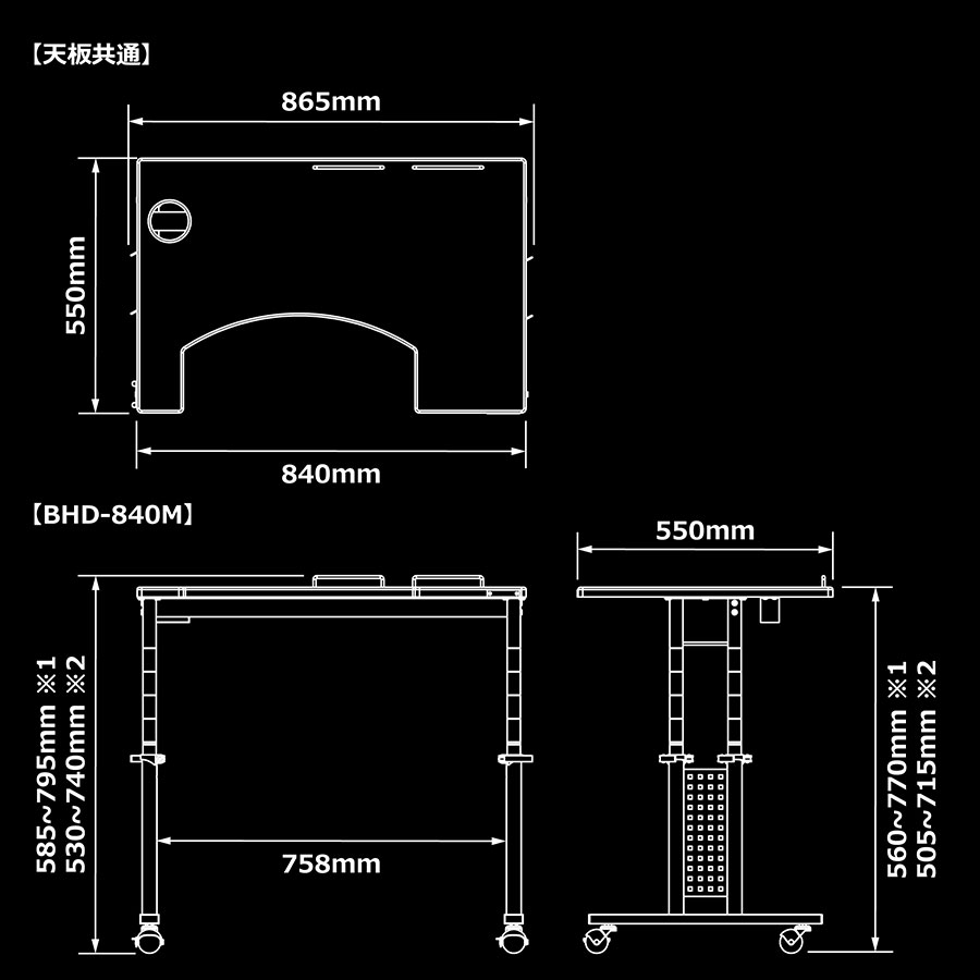 幅 約865mm 奥行き 約550mm 高さ 約585mm(585~795mm)※1 高さ 約530mm(530~740mm)※2 ※1:キャスター使用時 ※2:高さ調節ネジ使用時