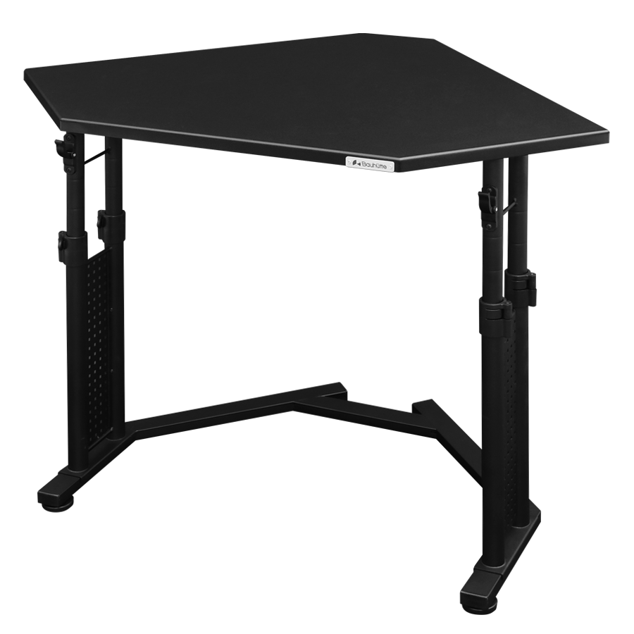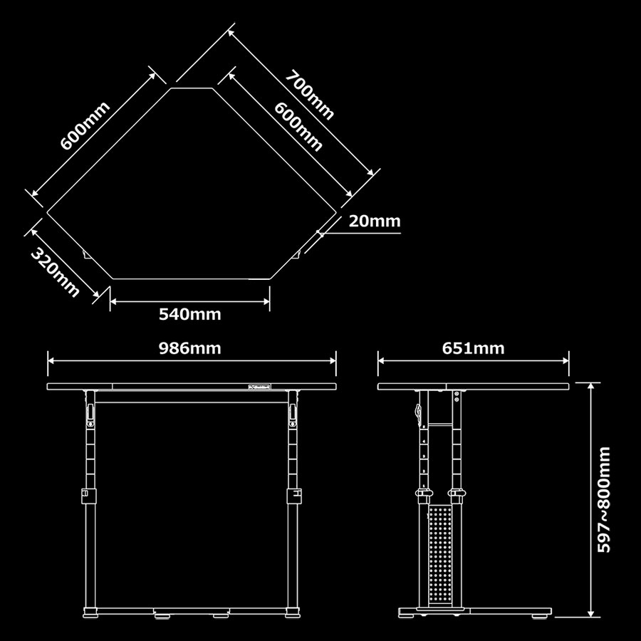 部屋の「カド」を活かして設置できる、昇降式ゲーミングデスクです。部屋の空間を広々と活用できます。