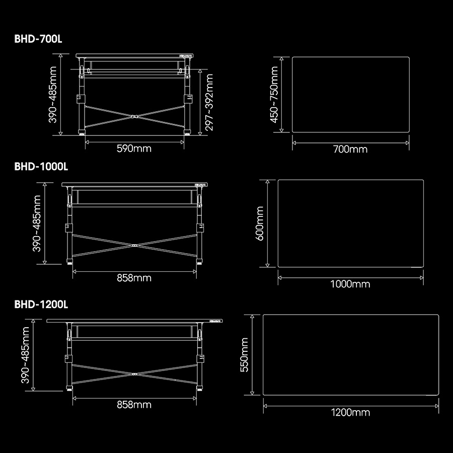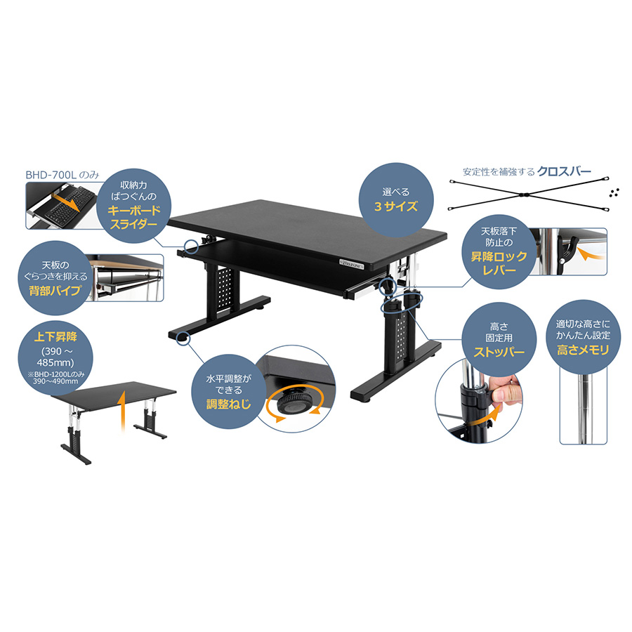 幅 約1000mm奥行き 約600mm 高さ 約390mm(390~485mm)