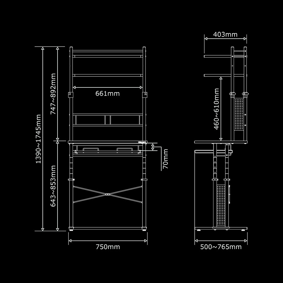 幅 約750mm奥行き 約500mm(500~765mm) 高さ 約1390mm(1390~1745mm)