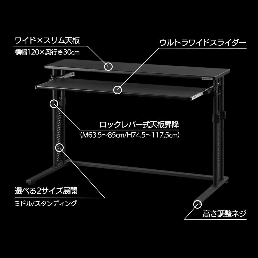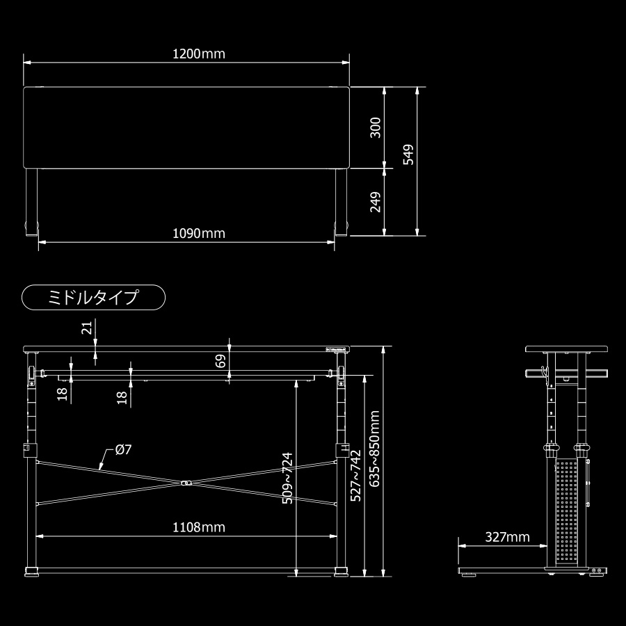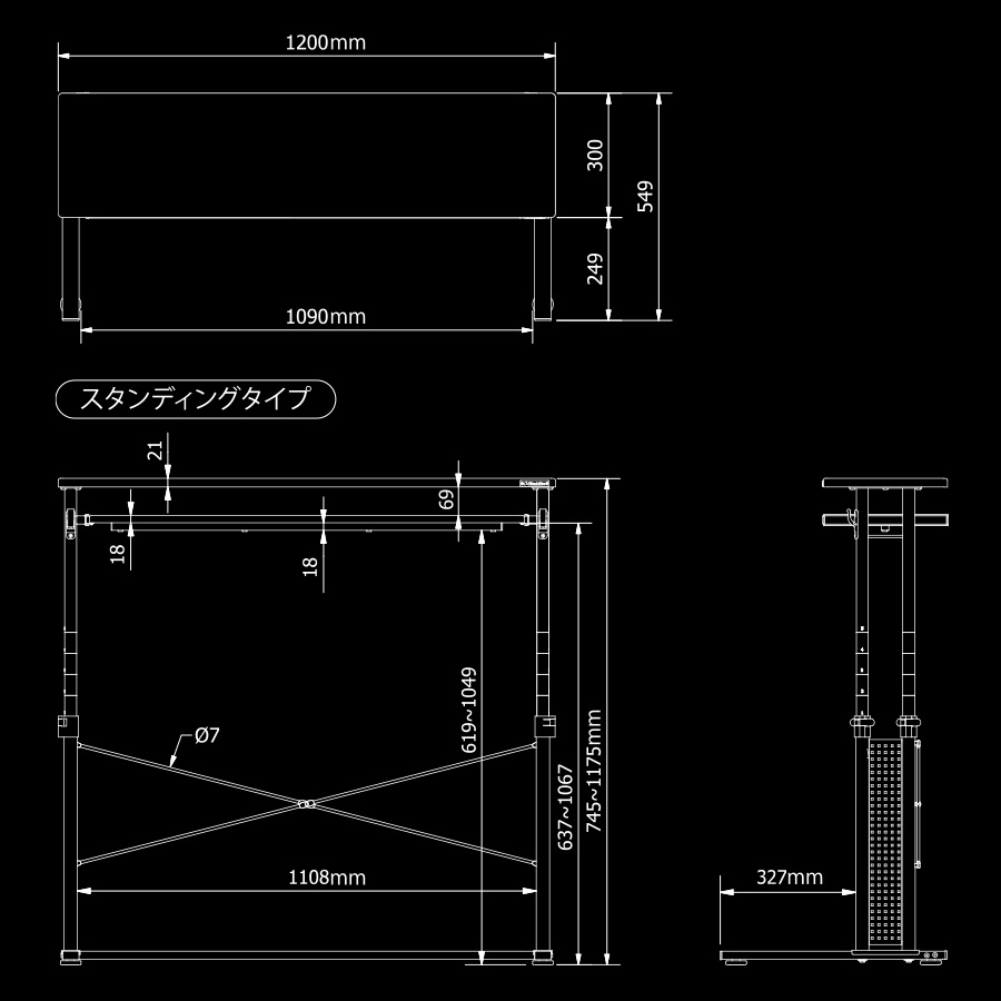 幅 約1200mm奥行き 約550mm(300~550mm) 高さ 約745mm(745~1175mm)