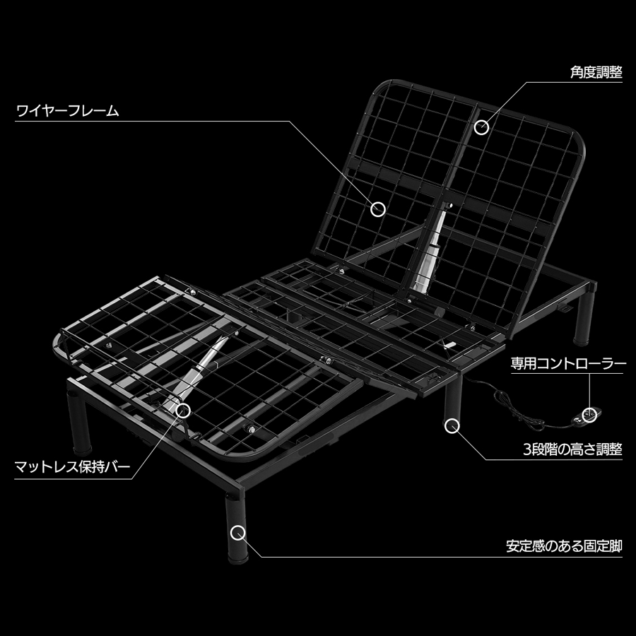 幅 約940mm奥行き 約1990mm 高さ 約138~285mm(マットレス保持バー含まず)