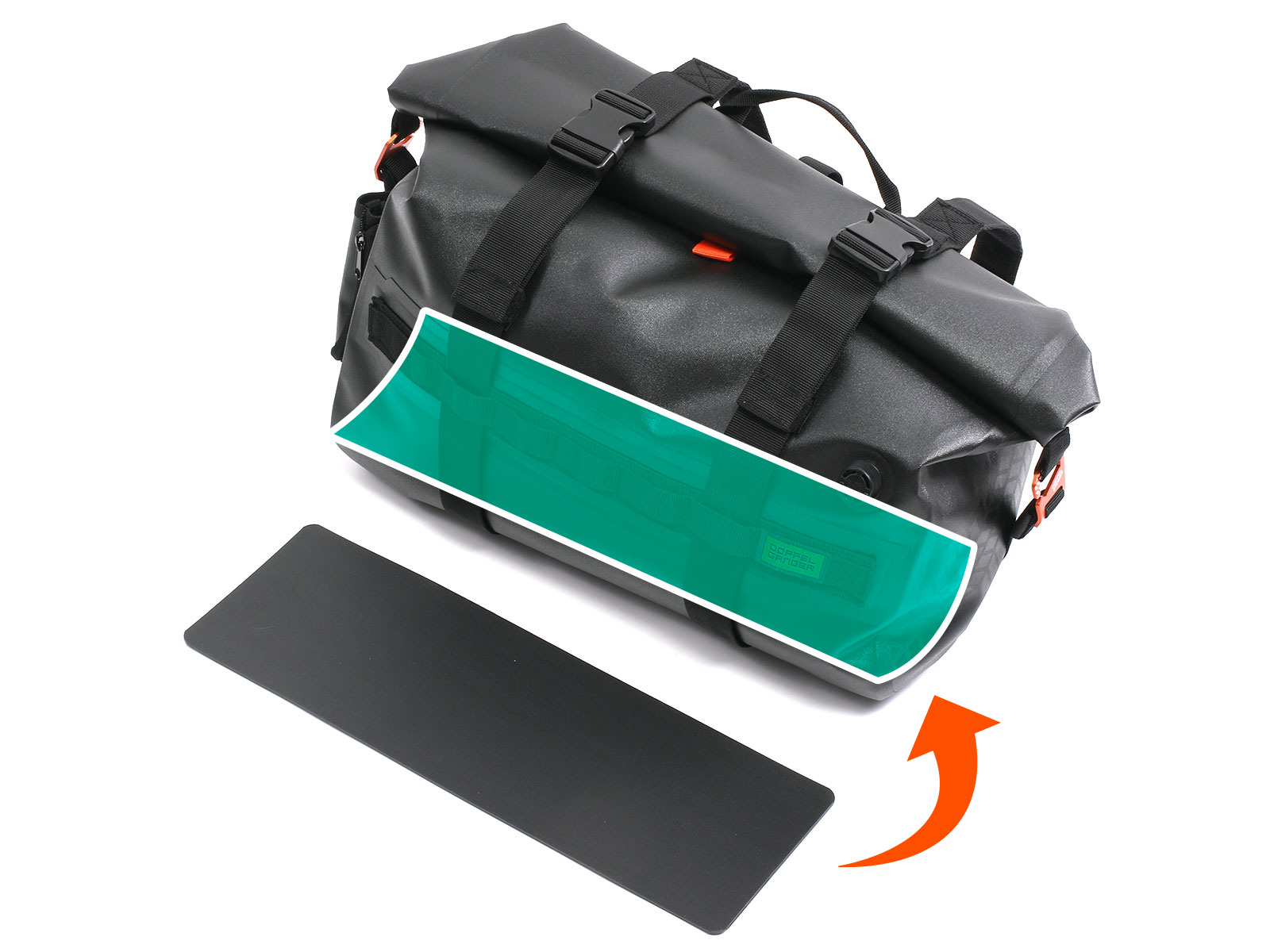 ツーリング途中で雨やドロを受けてもキャンプ用品を濡らさず、山道の走行でバッグが汚れてもバイクと一緒に丸洗いできる防水サイドバッグ。ソフトサイドバッグの荷物の収納による変形、底面の垂れ下がりによるツーリングアクシデントの原因を見直し、独自の安全対策を施しました。