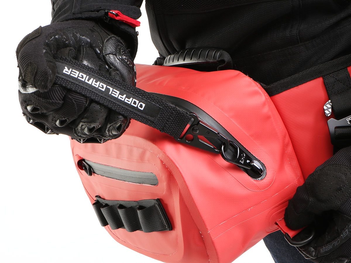 雨との遭遇を避けられないバイク乗りにとって、『防水』はバッグ選びの重要な要素。一般的なロールトップ構造の防水バッグは、防水性と引き換えに操作性を大きく犠牲にします。目指したのは防水性と操作性の両立。水を防いで使いやすさにも妥協しない、バイク乗り専用のウエストバッグ。※ご使用前に、必ずファスナー部分に付属の潤滑剤を塗布してください。※経年劣化により機能は低下します。
