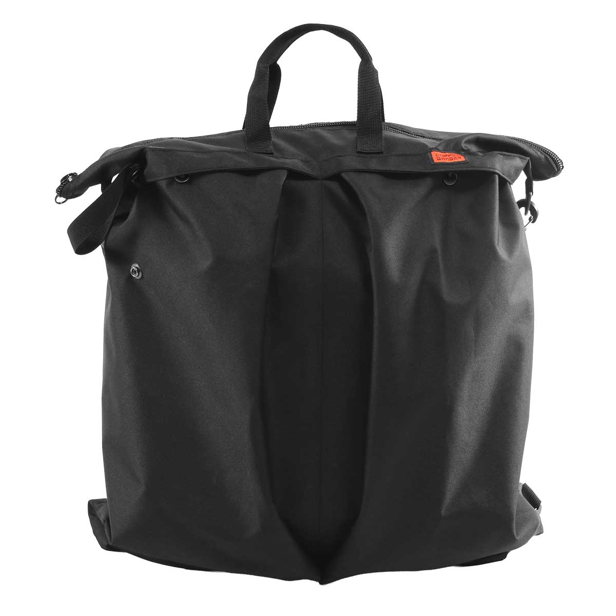 たたんで小さく、広げて大きく使えるヘルメットトートバッグ。 バイザー付きのヘルメットも収納できて、ヘルメットの持ち運びから旅行まで幅広い用途に使えるマルチバッグです。