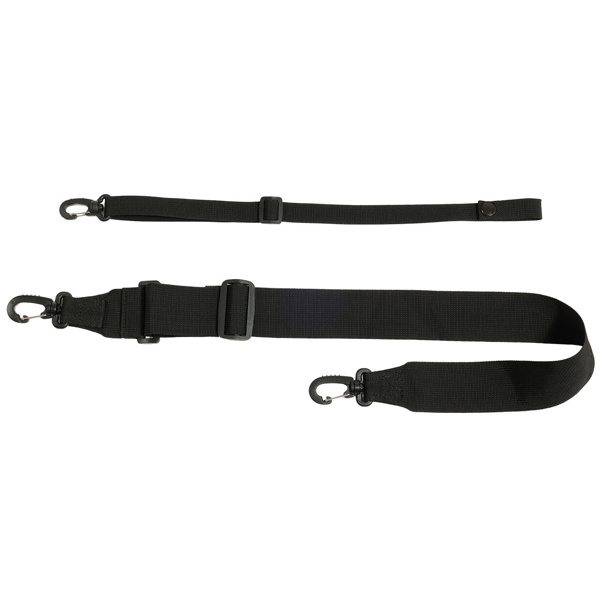 肩がけ、斜めがけどちらにも調整できる幅広のショルダーストラップ。バッグの前ズレを防ぐ着脱式のサポートストラップも付属します。