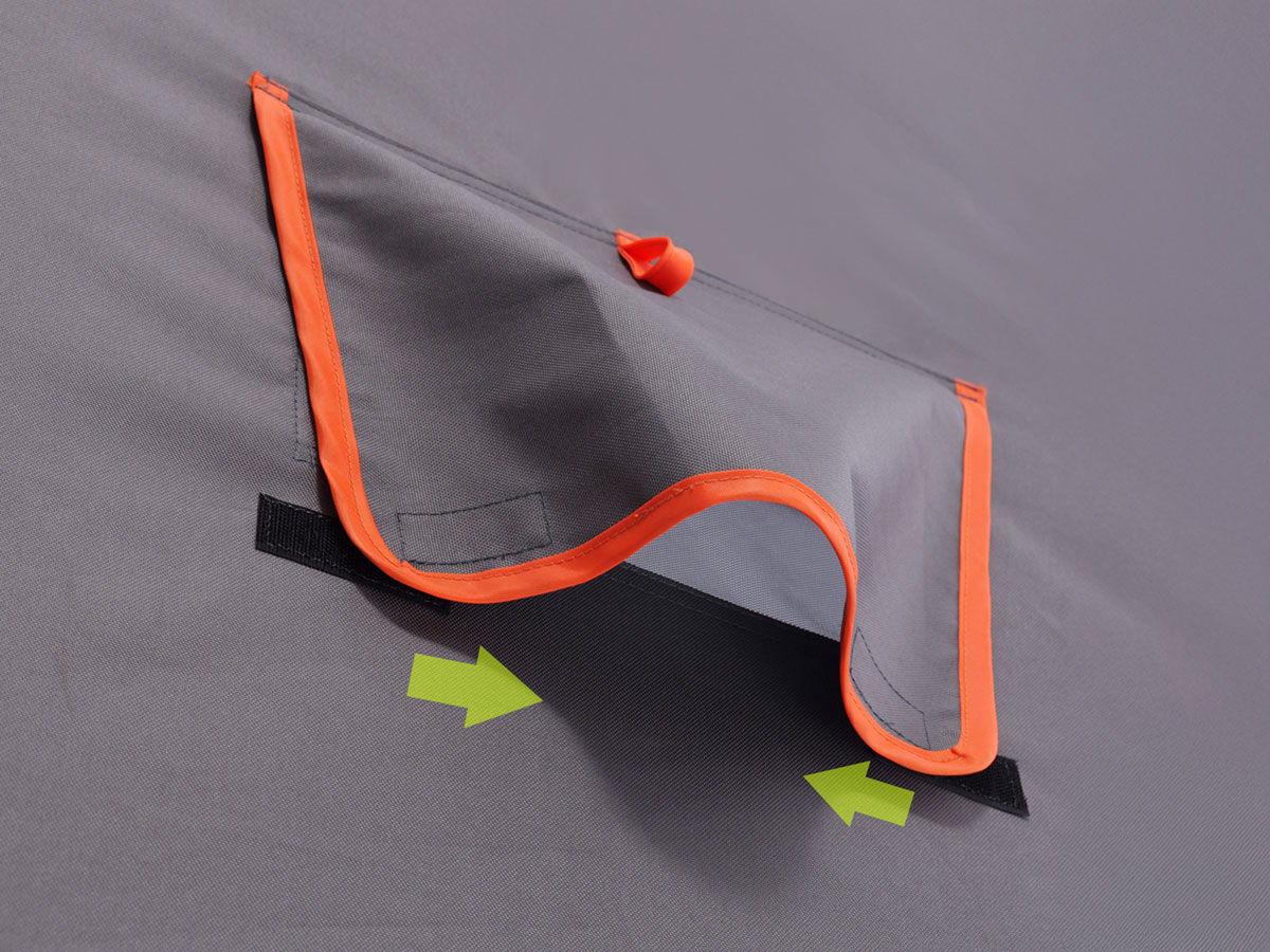 密閉された内部ではメッシュウィンドウのみでは効率的に空気が循環しない可能性があります。前後開閉により、短時間での換気を可能にしています。