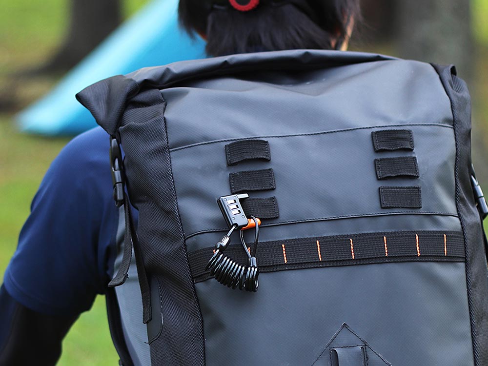 手のひらサイズの盗難対策。キーレスで施錠できるダイヤル式カラビナロック。